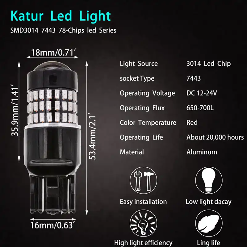 Katur 2pcs T20 7443 Led Bulb Double Contact Brake Stop Lights Drl 900 Lumens 3014 78 Smd Lens Led Car Lights Red White Yellow Car Light Light Reddrl Light Aliexpress