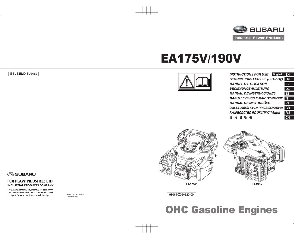 Subaru ea175v instructions for use.