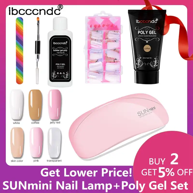 Polygel Set 6w Sunmini Uv Led Lamp Extension Varnish Nail Dryer Treatment Uv Gel Polish Slip Solution Poly Gel Kit Manicure Set Nail Dryers Aliexpress
