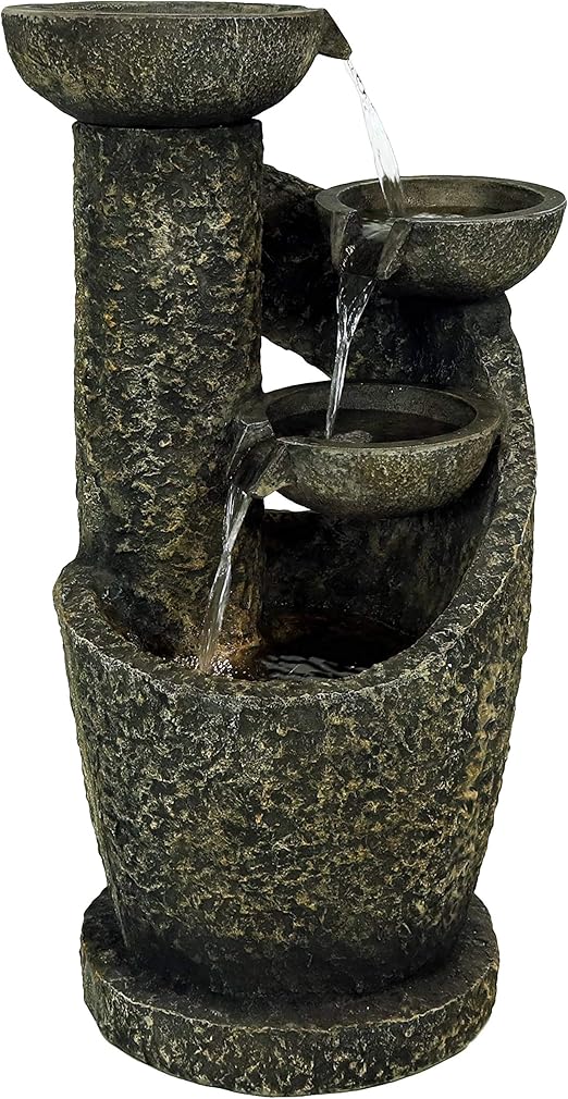 Just fill the fountain with water plug it into an outdoor outlet and enjoy the relaxing sounds and elegant sights of falling water.